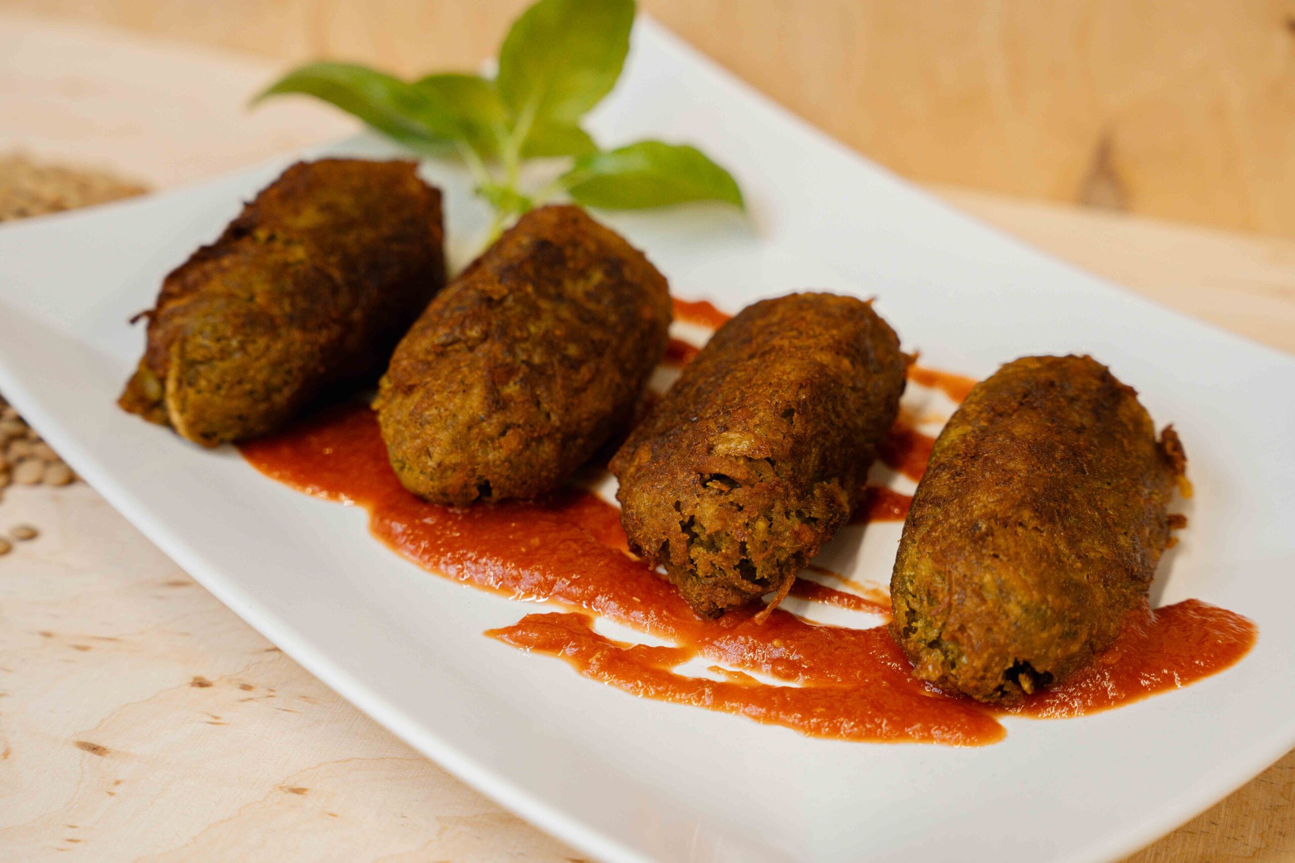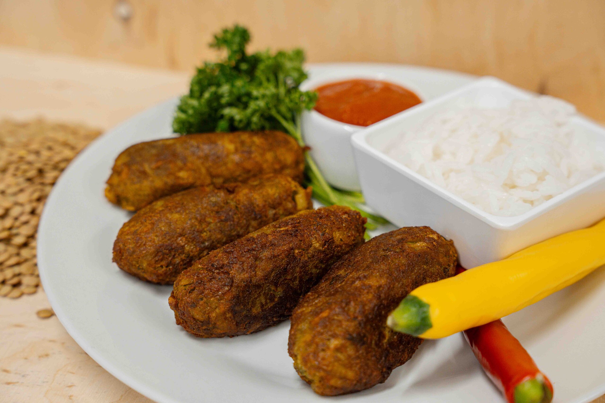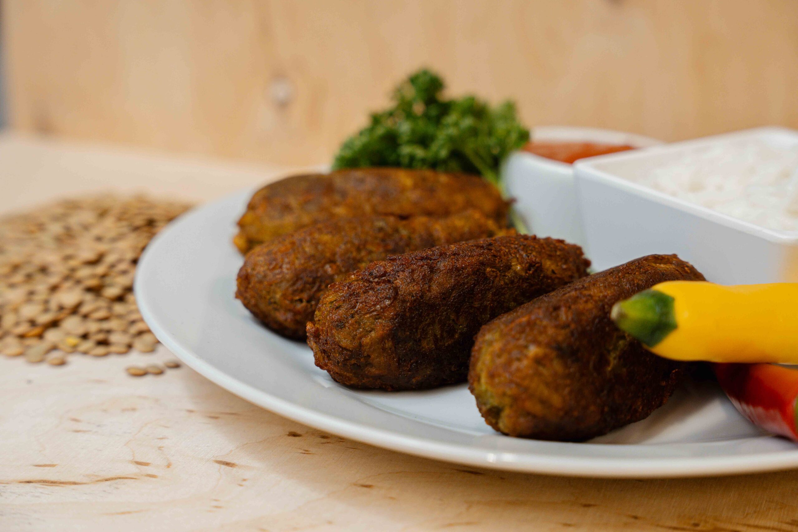 Aromatyczne, pełne błonnika i roślinnego białka klopsiki z żółtej soczewicy i warzyw, doprawione imbirem, garam masala i kminem. Dzięki dodatkowi bułki tartej zachowują zwartą strukturę, a świeża natka pietruszki i sok z cytryny nadają im lekkości i świeżości. Smażone na oleju, zyskują złocistą skórkę i doskonale komponują się z wegańskim sosem pomidorowym, czosnkowym lub ziołowym. Chrupiące na zewnątrz, miękkie w środku — to lekkie, a zarazem sycące danie bogate w białko roślinne, błonnik i witaminy.